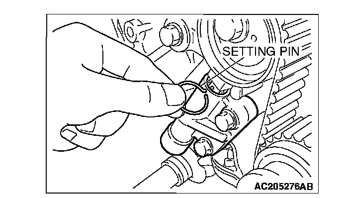 7. Remove the setting pin that has been inserted into the auto-tensioner.
