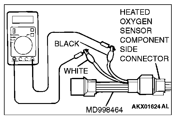 1. Disconnect the heated oxygen sensor connector and connect special tool MD998464 to the connector on the heated oxygen sensor side.