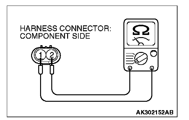 2. Measure resistance between terminal No. 1 and terminal No. 2 of the connector at the engine oil control valve side.
