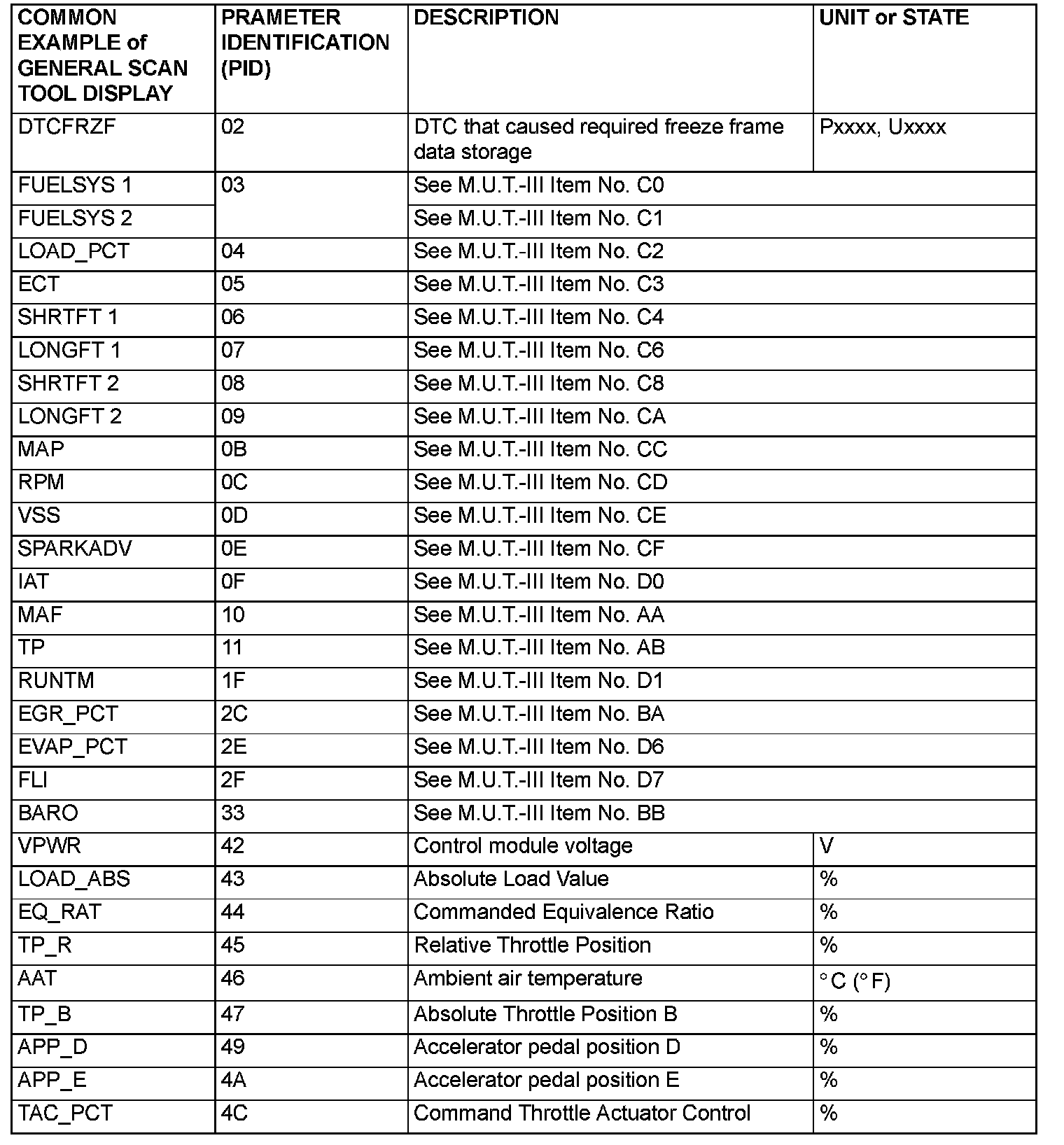 Freeze Frame Data For General Scan Tool: