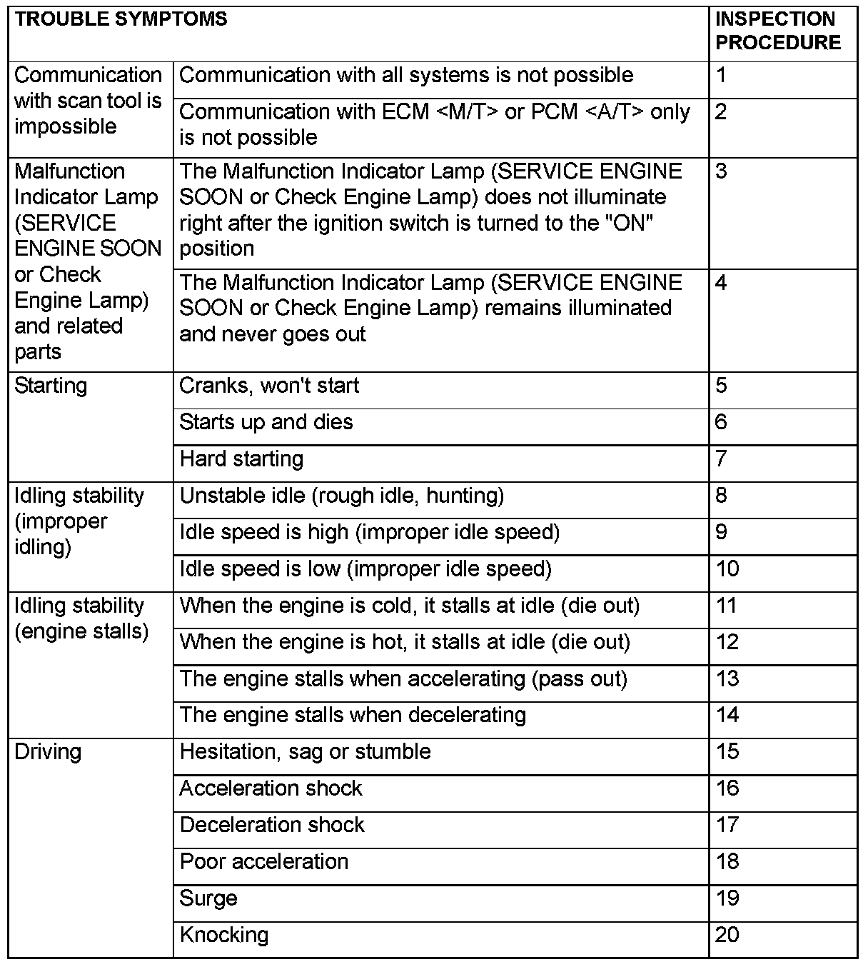 SYMPTOM CHARTInspection Chart For Trouble Symptoms Part 1:
