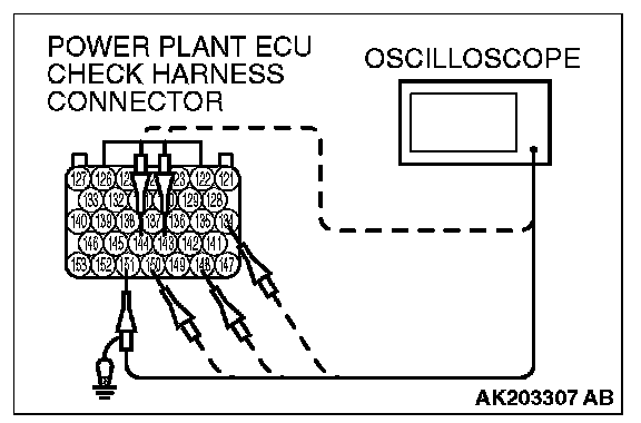 2. Connect the oscilloscope probe to each check harness connector terminal to analyze each cylinder: