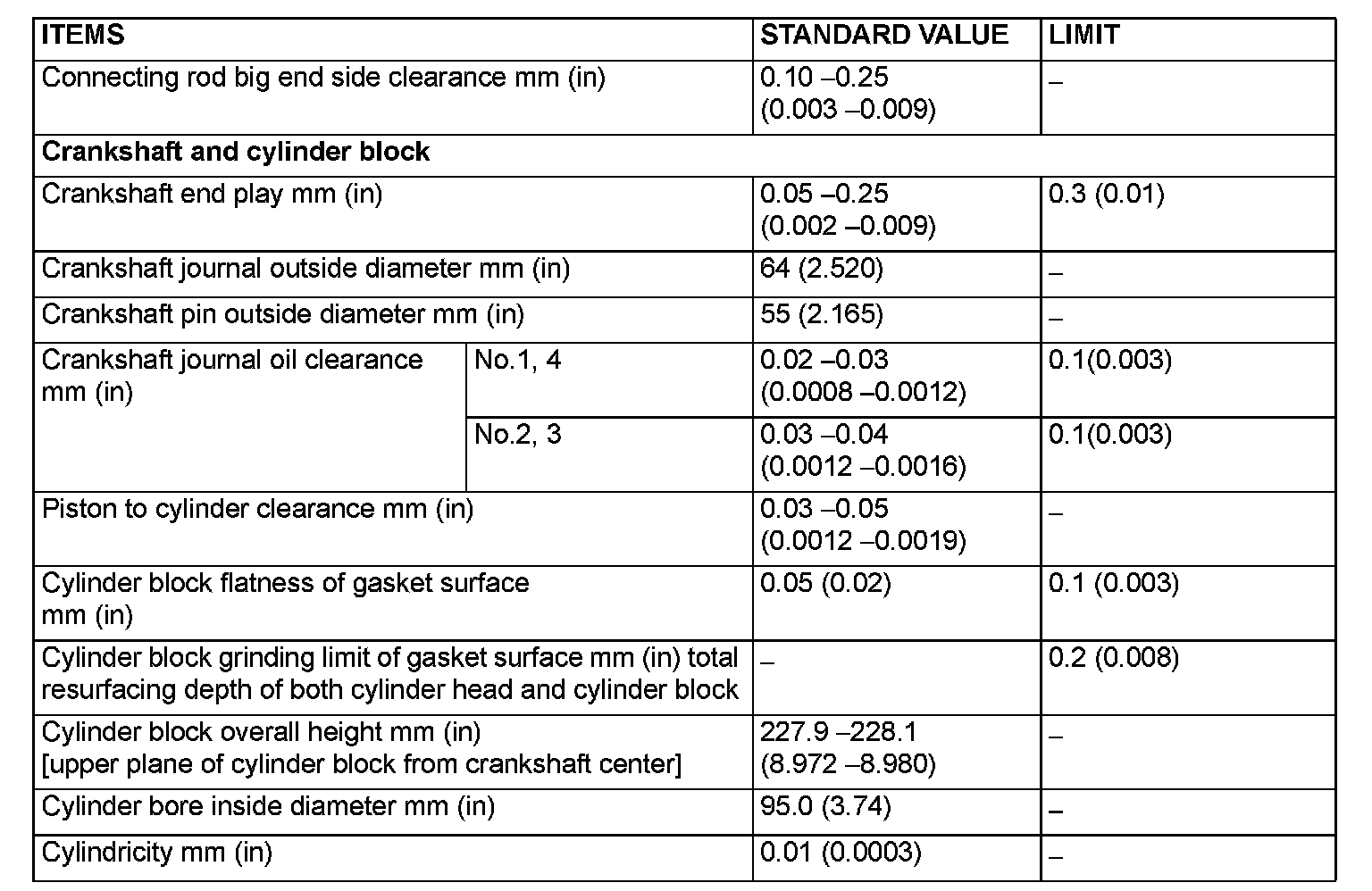 SERVICE SPECIFICATIONS (Updated Per TSB# 06-11-006):