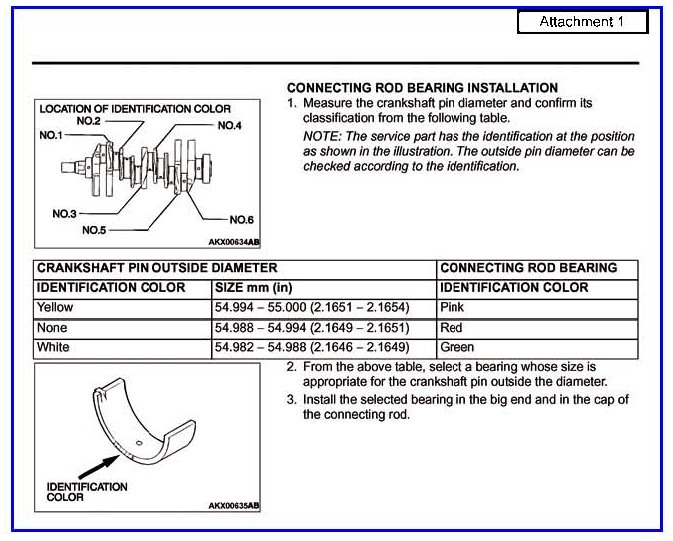 CONNECTING ROD BEARING IDENTIFICATION - 6G74 & 6G75 ENGINES - SERVICE MANUAL REV