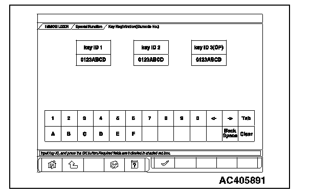 8. Enter the ID on the bar code plate which is attached to the ignition key, and press the OK button.