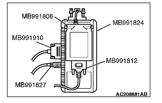 3. Connect special tool MB991827 to special tool MB991824 and the personal computer.