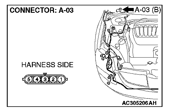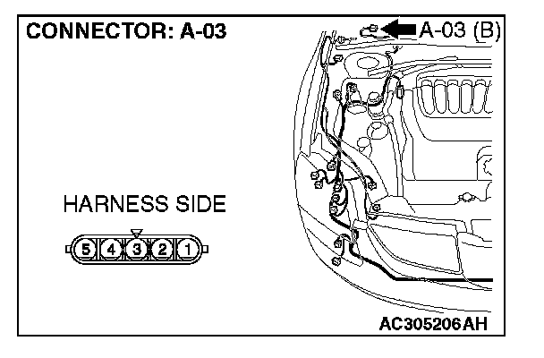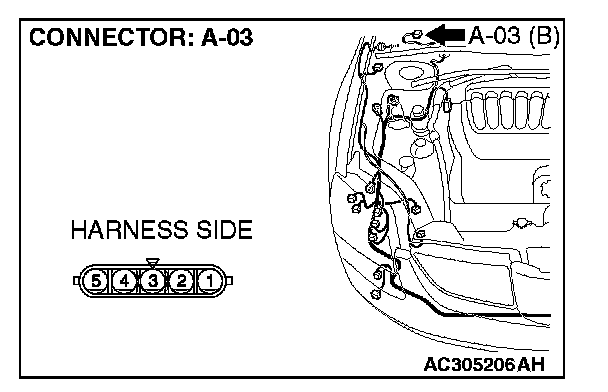 STEP 2. Check windshield wiper motor connector A-03 for loose, corroded or damaged terminals, or terminals pushed back in the connector.