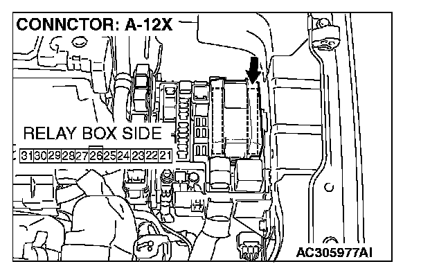 STEP 4. Check front-ECU connector A-12X for loose, corroded or damaged terminals, or terminals pushed back in the connector.