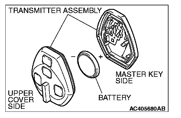 Install a new battery to the transmitter assembly with its (+) side facing towards the master key side.