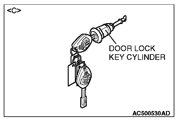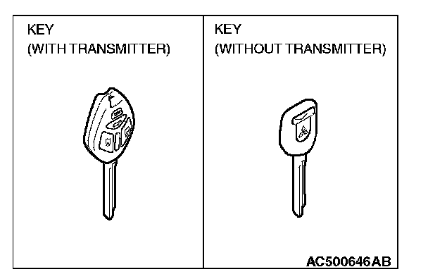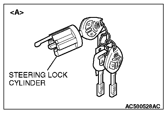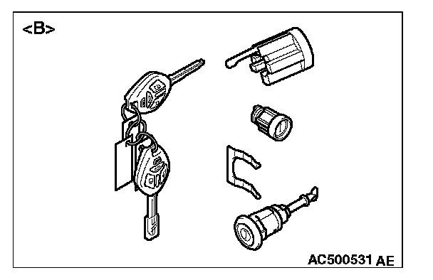 - When adding the ignition key separately, or replacing the components by the steering lock cylinder of illustration [A] (the ignition key is simultaneously supplied) or the key set of illustration [B], register the encrypted code. Refer to Chassis Electrical, Encrypted Code Registration Criteria Table.