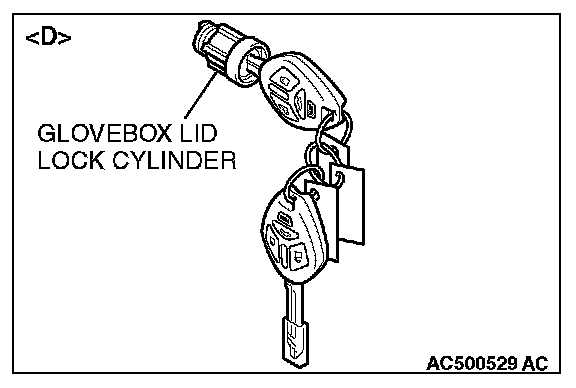 - When replacing the components by the door lock key cylinder of illustration [C] or the glove box lid lock cylinder of illustration [D], do not register the encrypted code with the bar code on the ignition key which is supplied to each lock cylinder simultaneously.