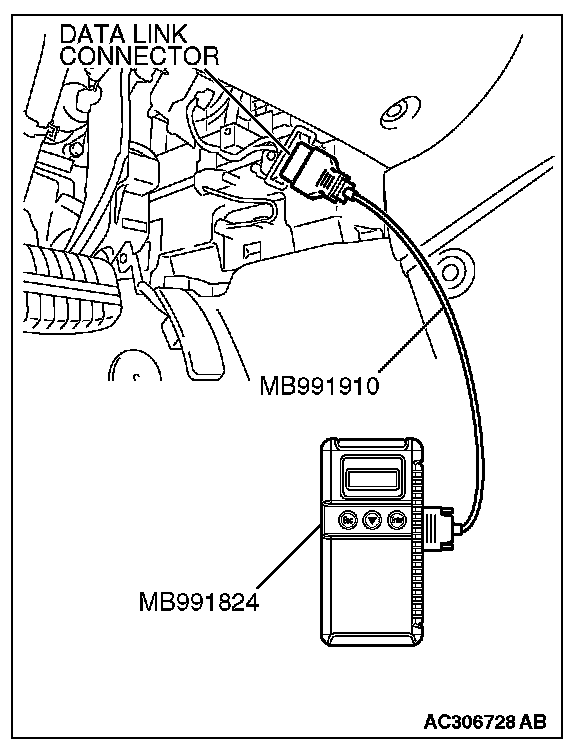 3. Connect special tool MB991824 (V.C.I.) to the data link connector.