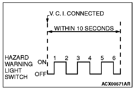 NOTE: When the hazard warning light switch has been pressed six times, the ETACS-ECU locks and unlocks the doors automatically once. The ETACS-ECU is ready to register an encrypted code.