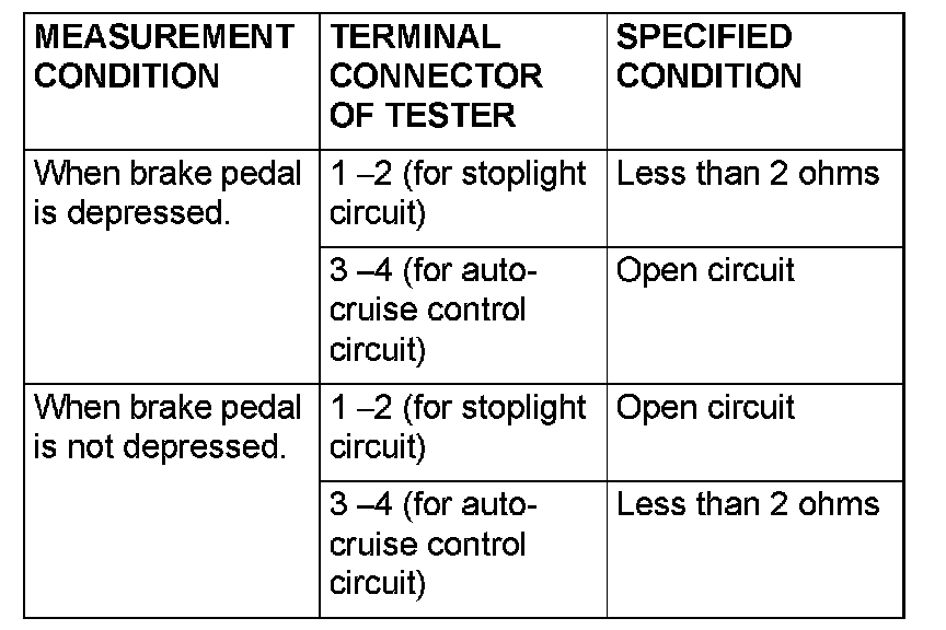 Brake Switch (Cruise Control): Testing and Inspection