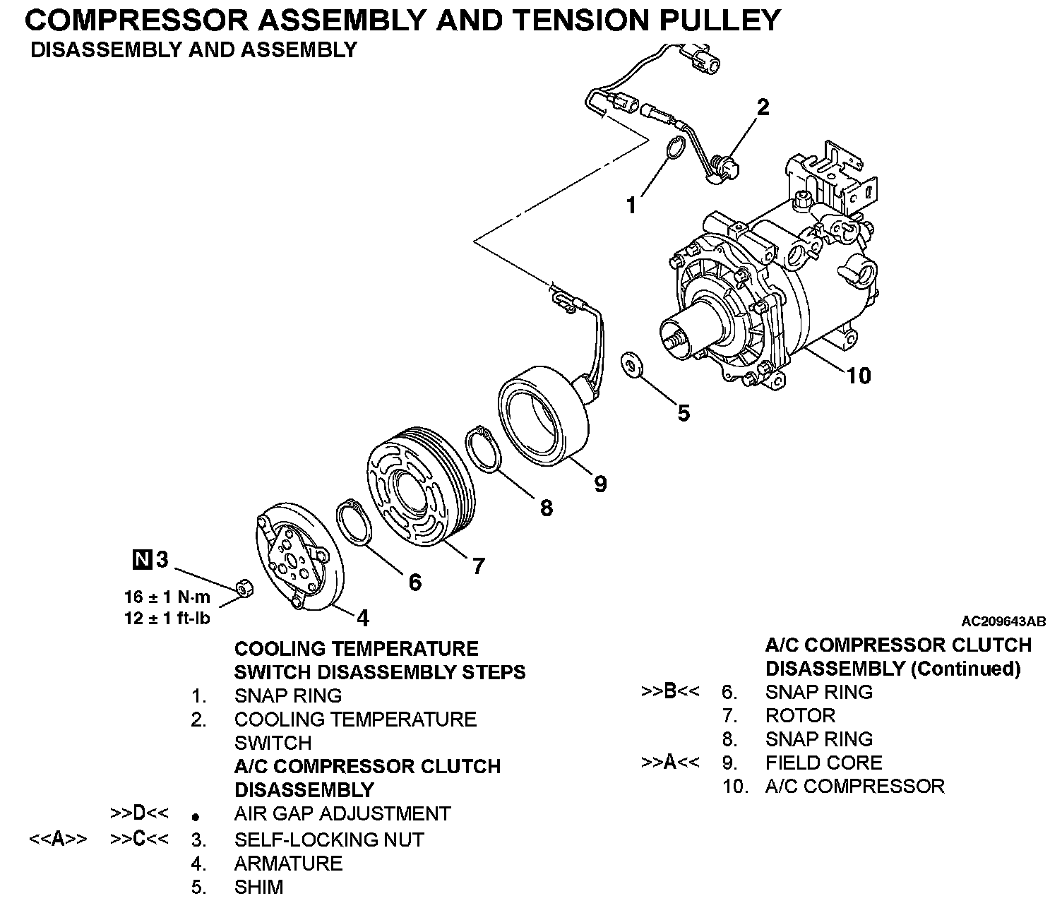 COMPRESSOR ASSEMBLY AND TENSION PULLEYDisassembly Steps 1-10: