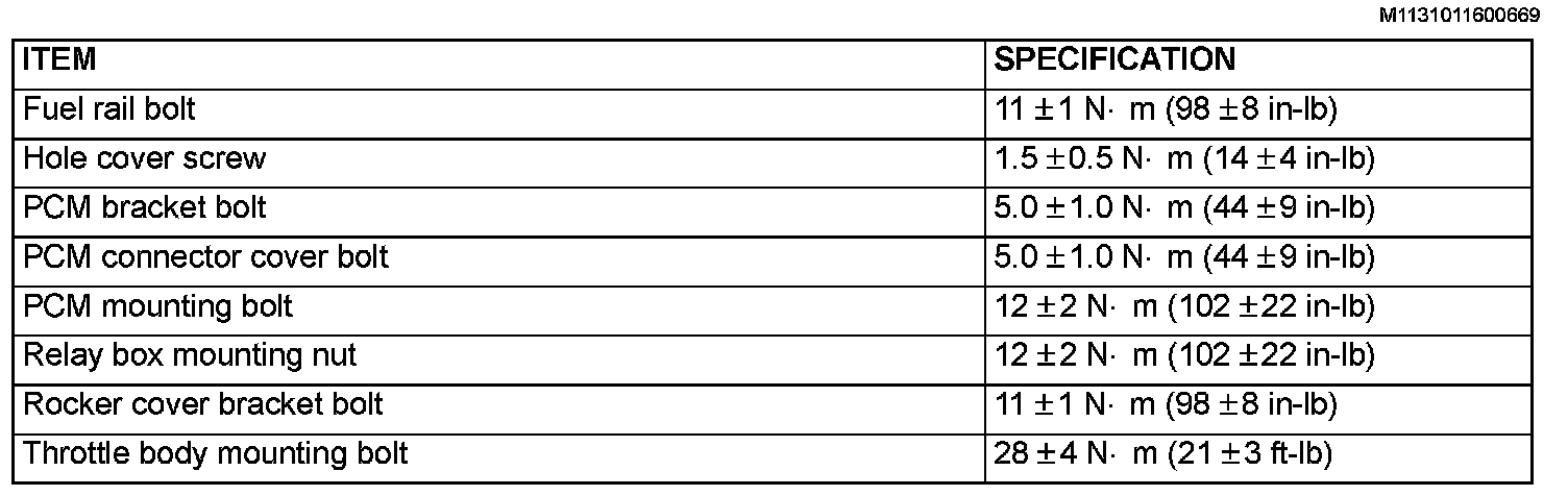 Fastener Tightening Specifications: