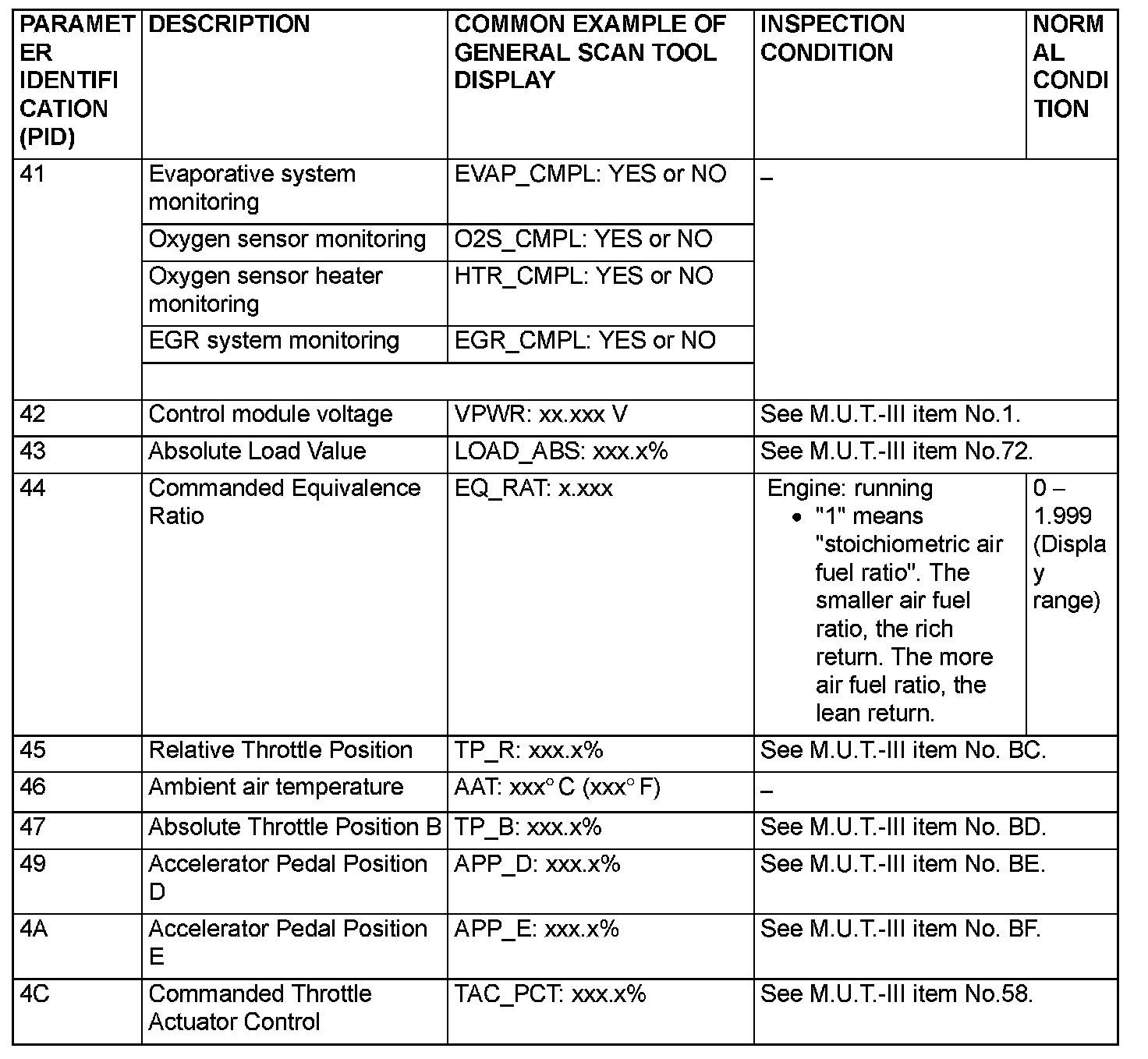General Scan Tool(GST) Mode 01 Reference Table Part 6: