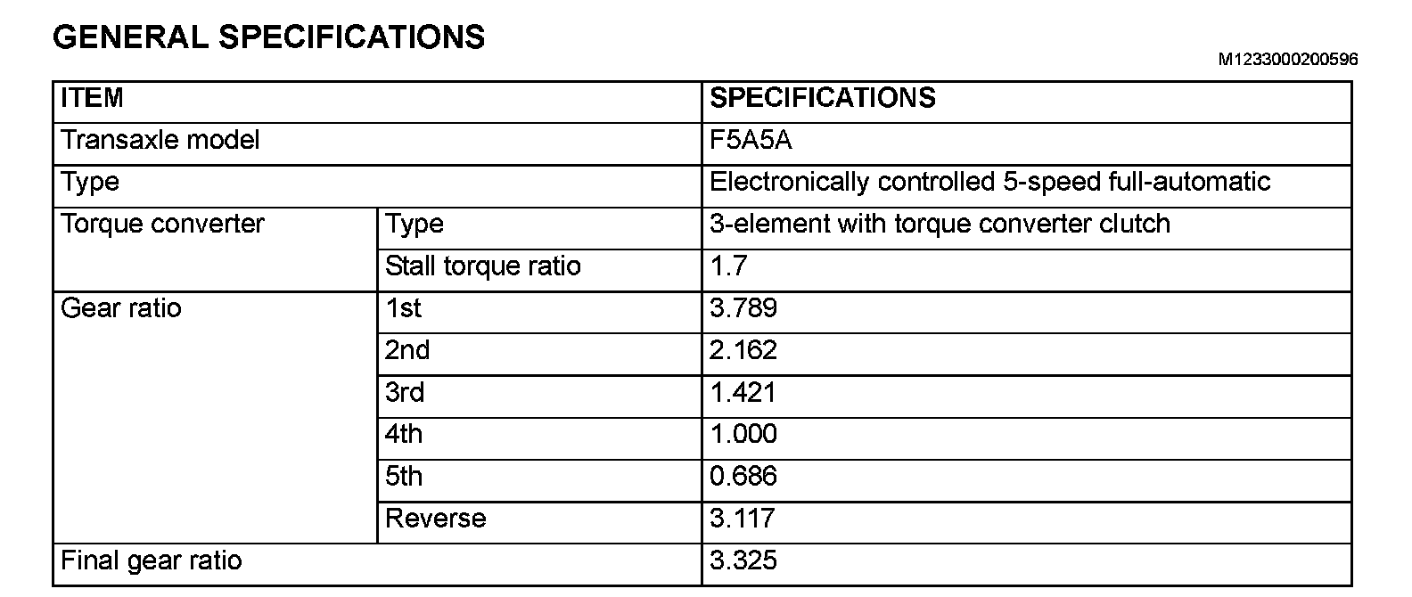 GENERAL SPECIFICATIONS:
