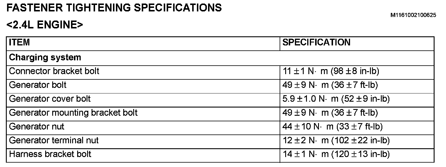 Fastener Tightening Specifications: