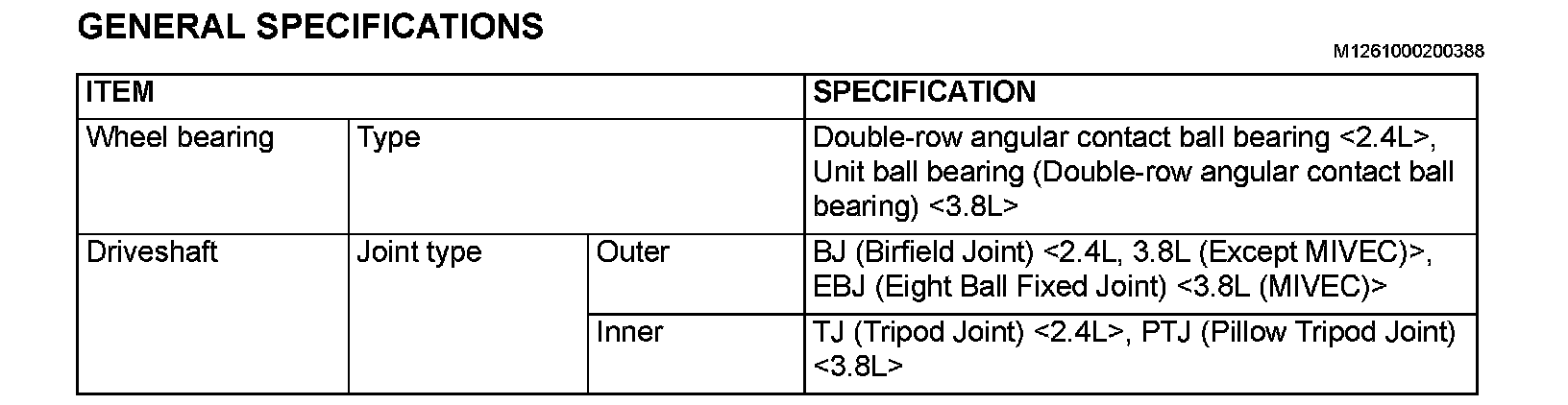 GENERAL SPECIFICATIONS: