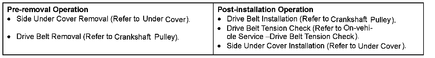GENERATOR ASSEMBLYPre-removal Operation & Post-installation Operation: