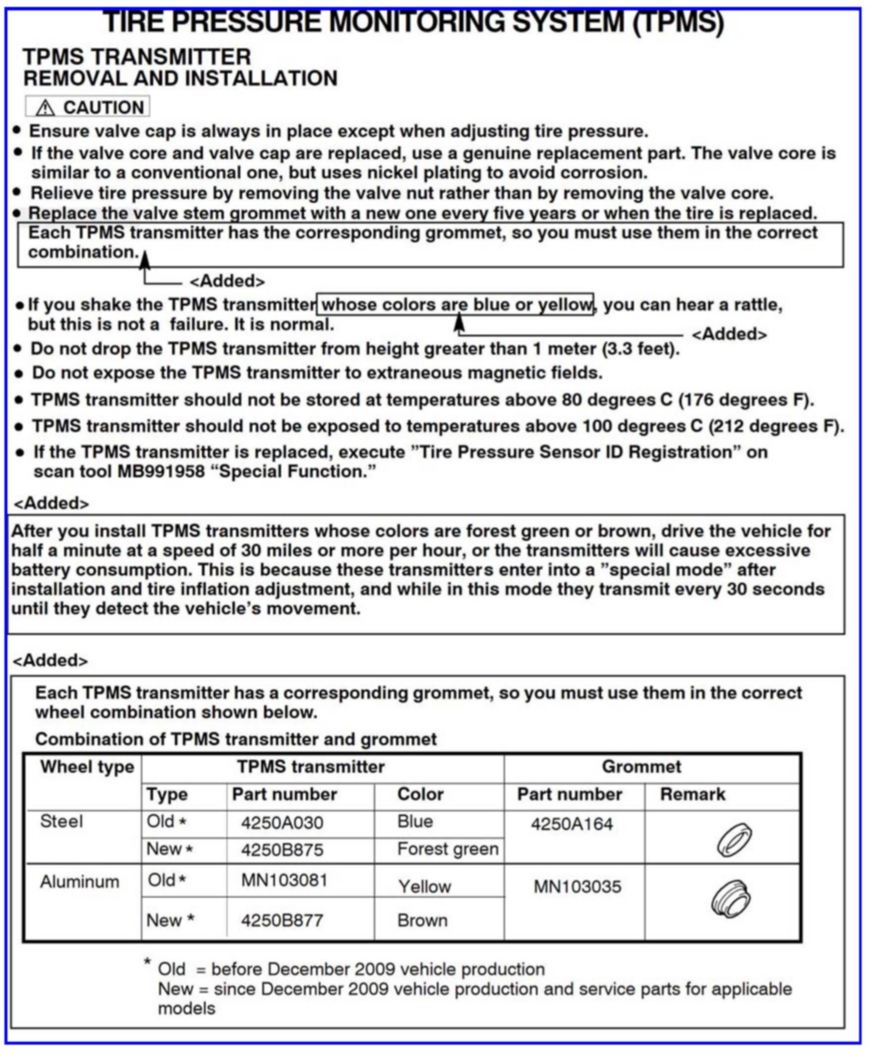 TPMS SERVICE PROCEDURES - SERVICE MANUAL REVISION
