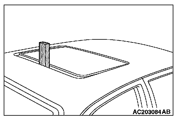 2. Stop the sunroof operation by fitting the block (board etc.). Then press and hold the sunroof close switch for 10 seconds with the sunroof stopped.