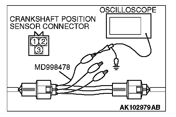 4. Connect the oscilloscope probe to crankshaft position sensor connector terminal No. 2 (black clip of special tool).