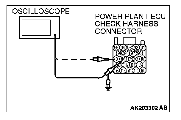 3. Connect the oscilloscope to check harness terminal No. 103. (Check the crankshaft position sensor signal wave pattern.)