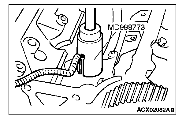 CAUTION: When the knock sensor replacement is performed, use scan tool MB991958 to initialize the learning value (Refer to Initialization Procedure for Learning Value in MFI Engine).