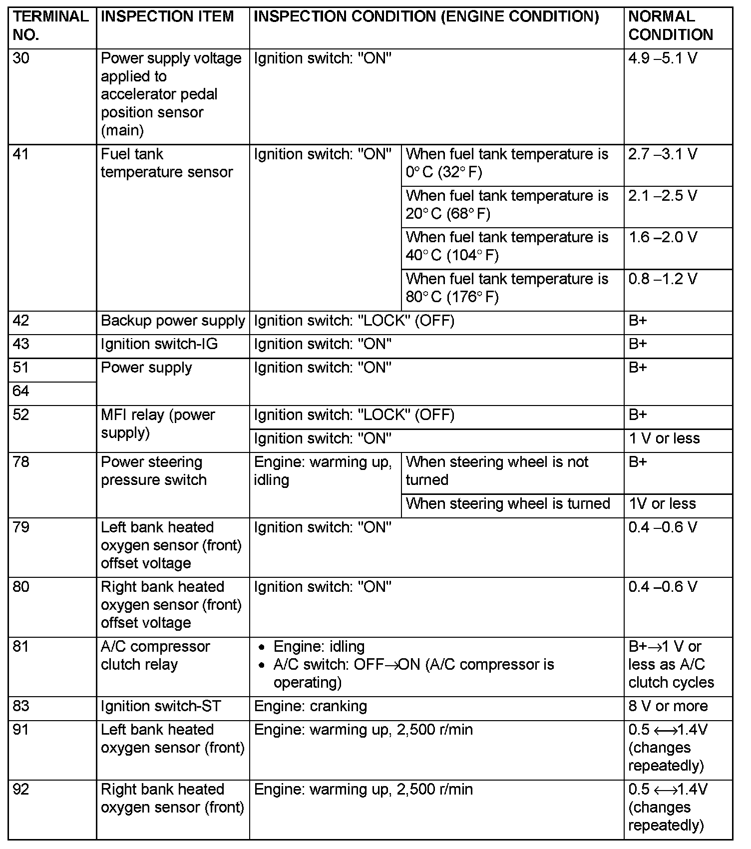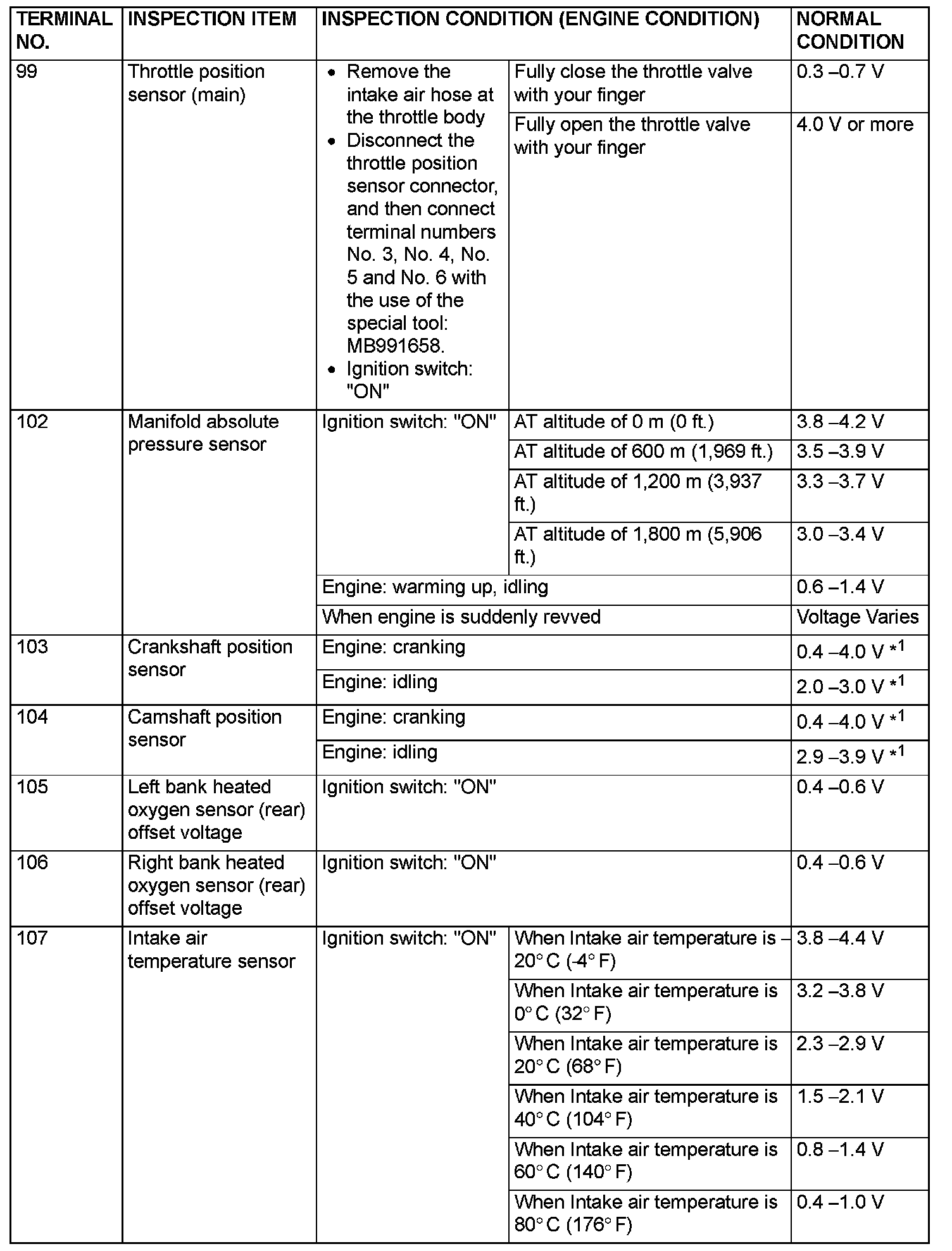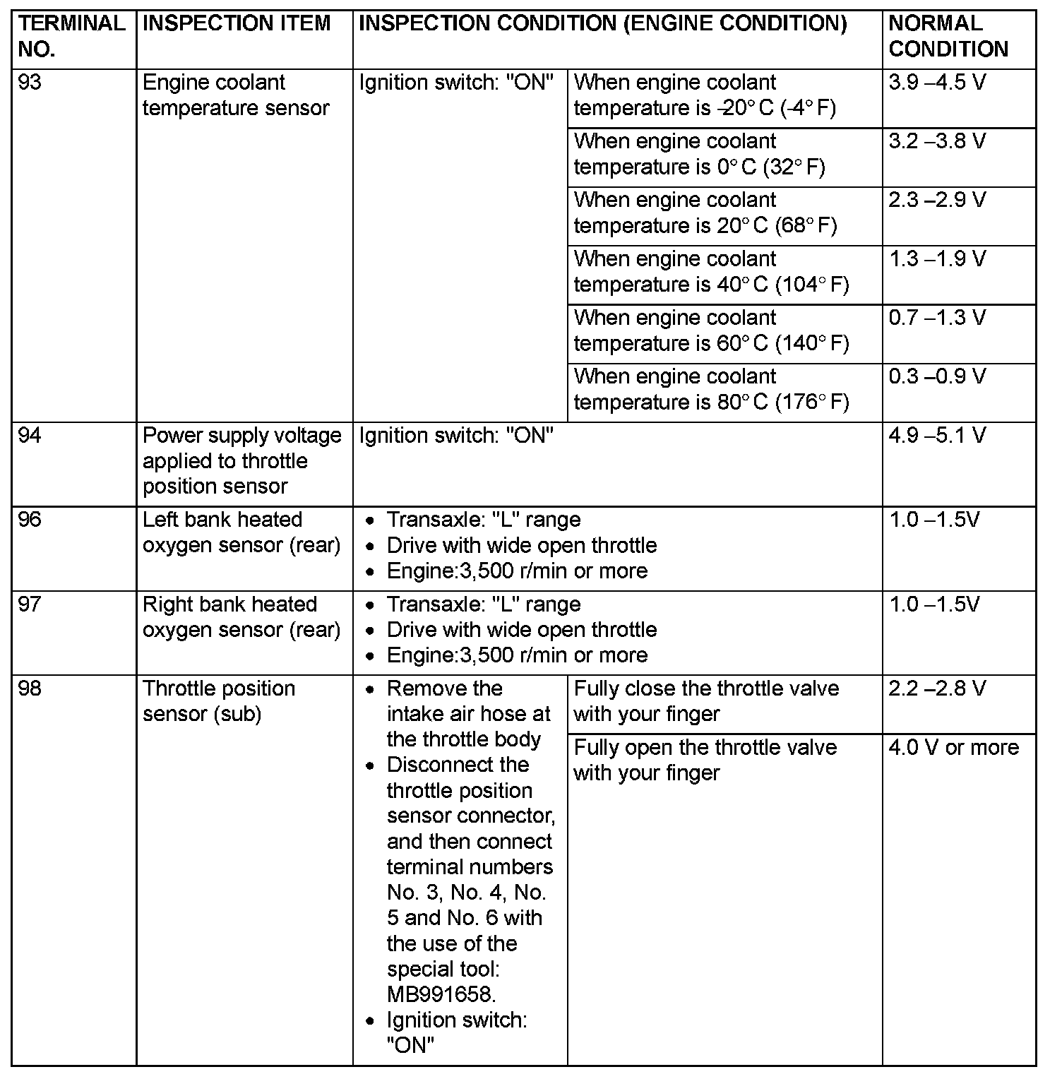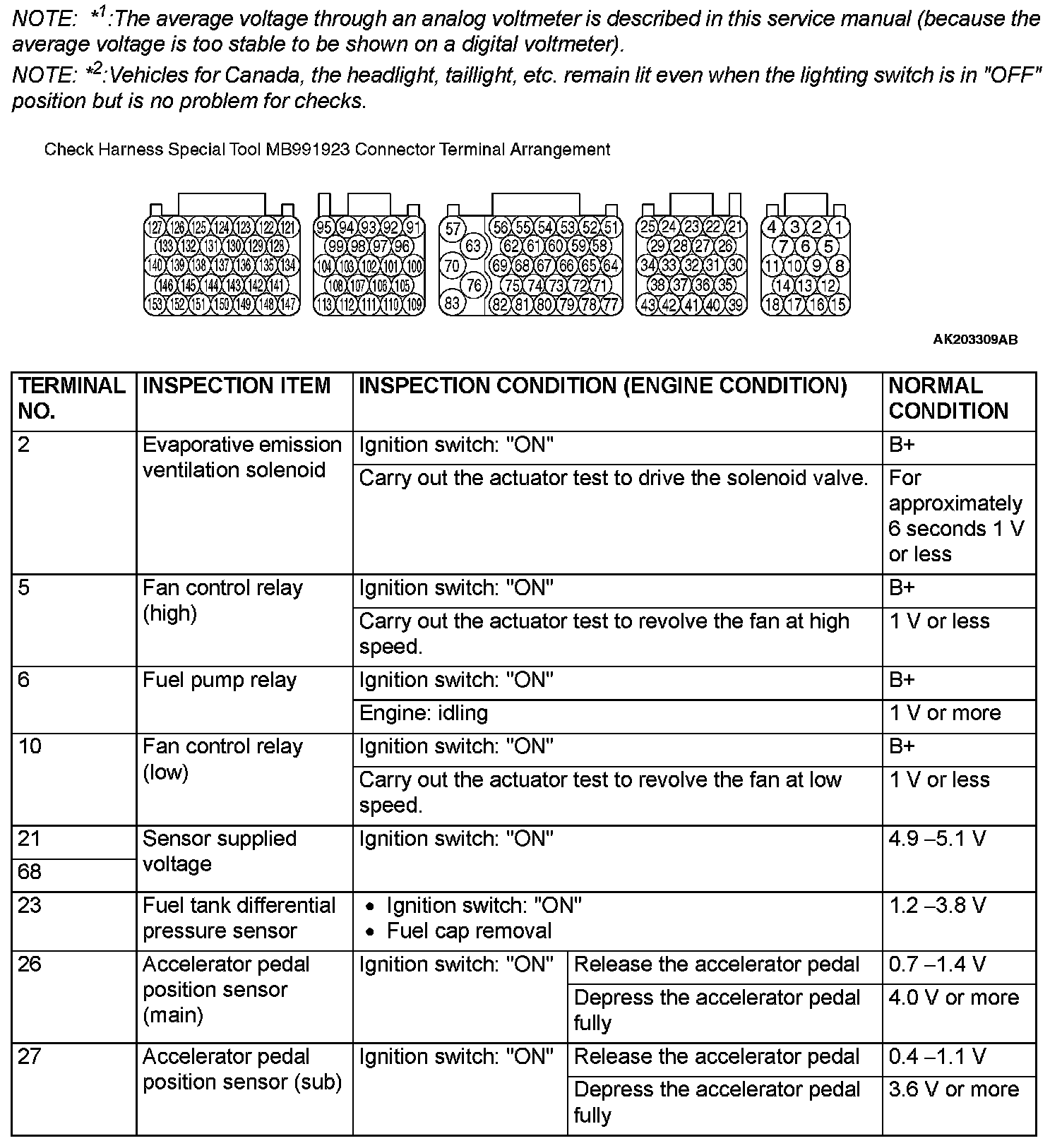 Check Harness Special Tool MB991923 Connector Terminal Arrangement Part 1: