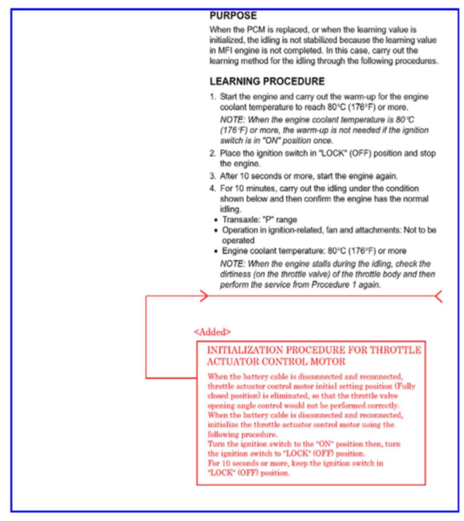 THROTTLE ACTUATOR CONTROL MOTOR INITIALIZATION PROCEDURE - SERVICE MANUAL REVISION