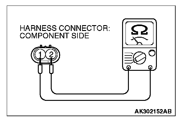 2. Measure resistance between terminal No. 1 and terminal No. 2 of the connector at the engine oil control valve side.