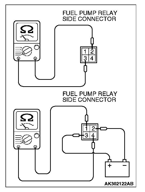 Inspect the fuel pump relay for continuity in accordance with the chart shown.