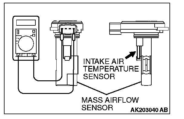 INTAKE AIR TEMPERATURE SENSOR CHECK1. Disconnect the mass airflow sensor connectors.