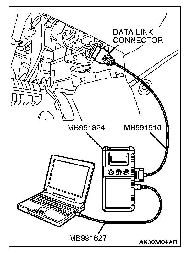 1. Connect scan tool MB991958 to the data link connector.