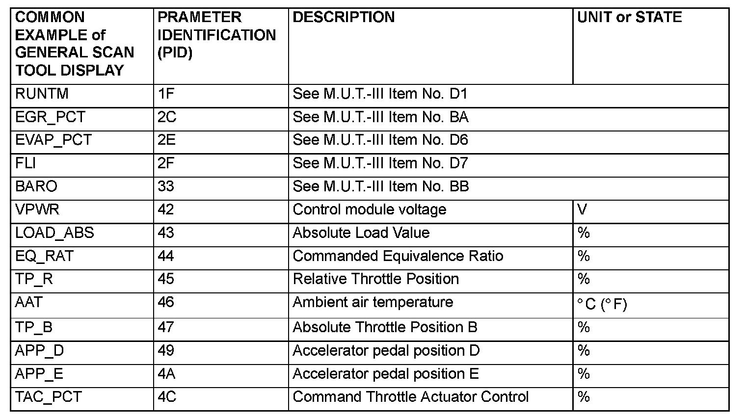Freeze Frame Data Item for General Scan Tool Part 2: