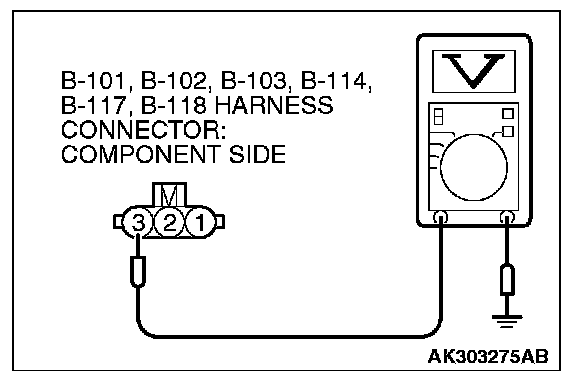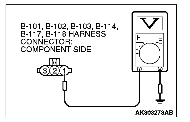 STEP 3. Measure the power supply voltage at ignition coil connectors B-101, B-102, B-103, B-114, B-117, B-118.