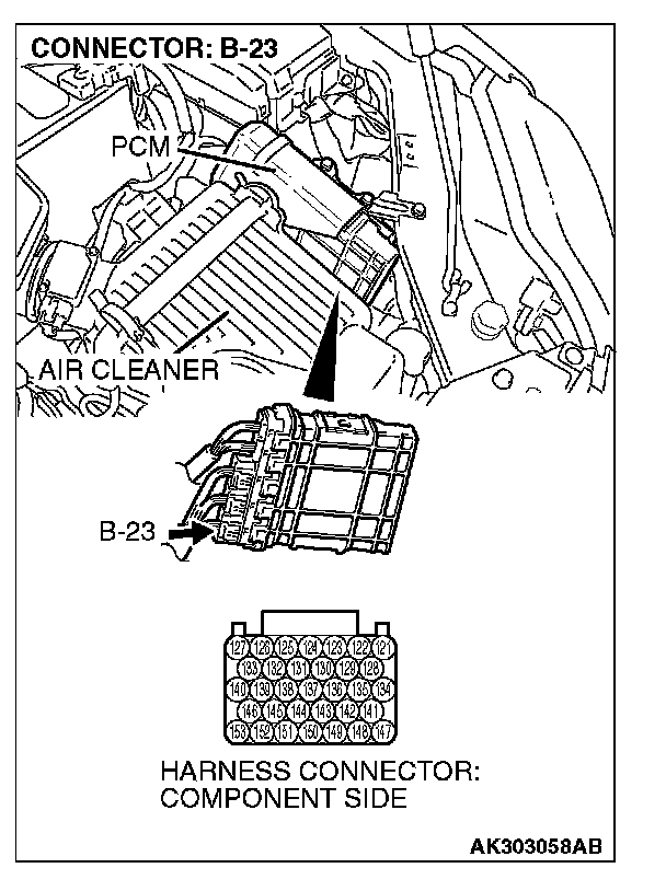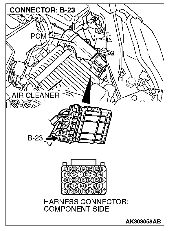 b. Check the harness wire between ignition coil connector B-118 (terminal No. 3) and PCM connector B-23 (terminal No. 150) at ignition coil 2.