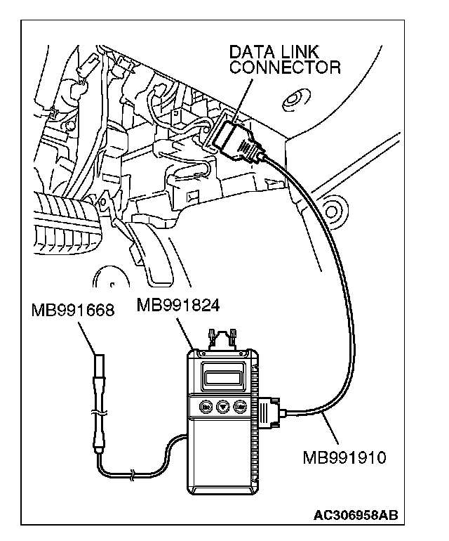 2. Connect scan tool MB991958 to the data link connector.