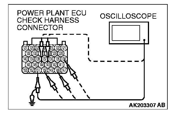 2. Connect the oscilloscope probe to each check harness connector terminal to analyze each cylinder: