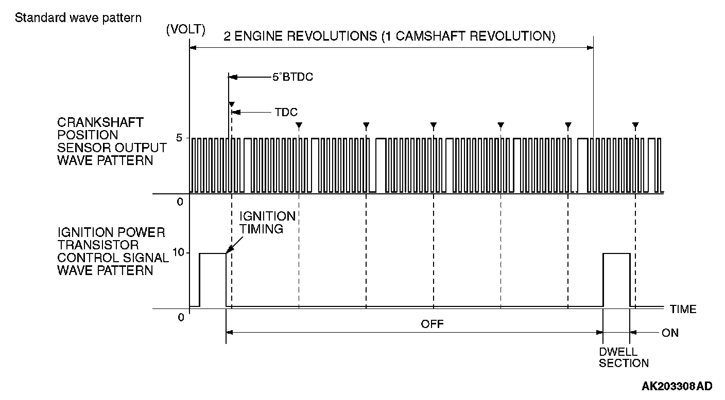 Point: The power transistor control signal (ignition timing) is advanced when the engine speed is increased.
