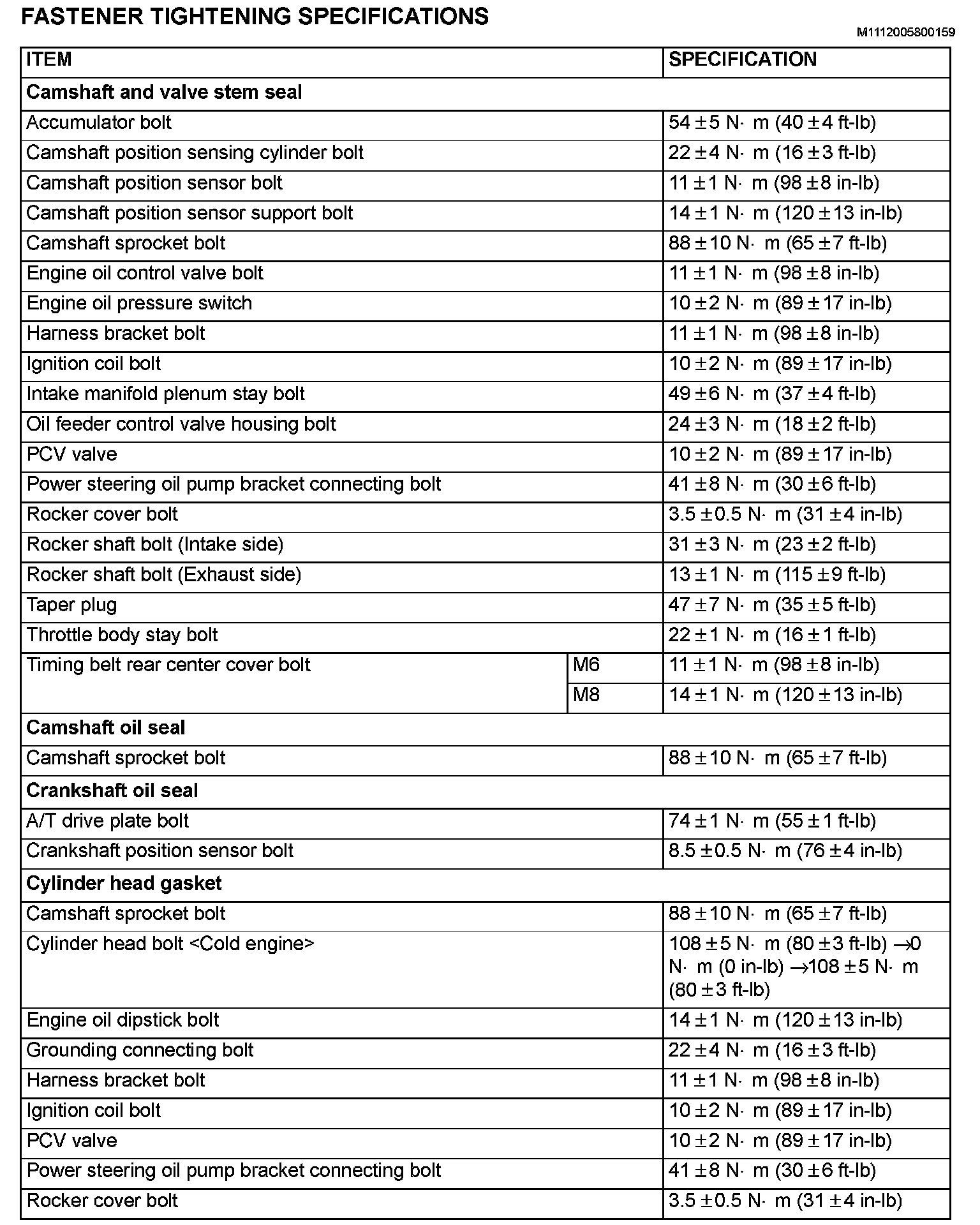 FASTENER TIGHTENING SPECIFICATIONSFASTENER TIGHTENING SPECIFICATIONS (PART 1):