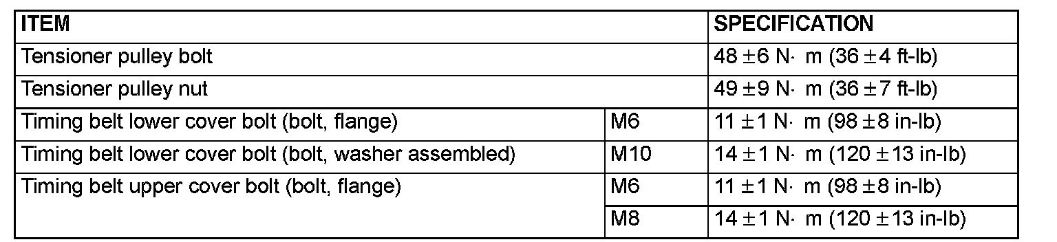 Crankshaft center pulley bolt 185 ± 5 Nm (136 ± 3 ft-lb)