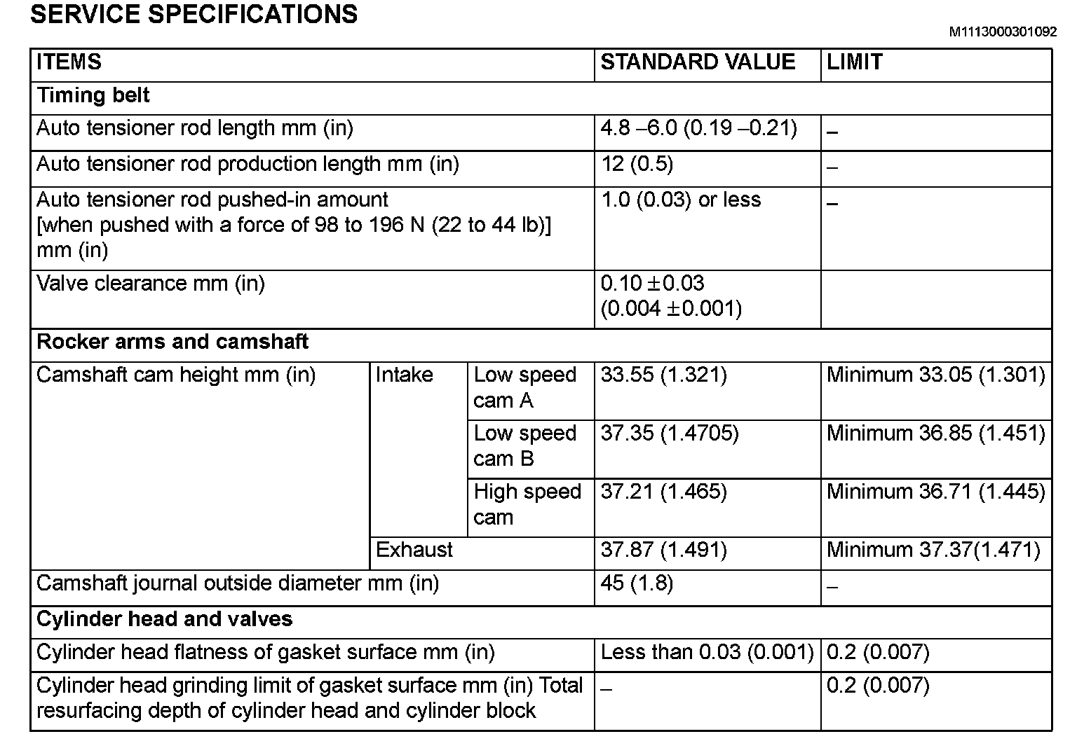 SERVICE SPECIFICATIONS (PART 2) (Updated Per TSB# 06-11-006):