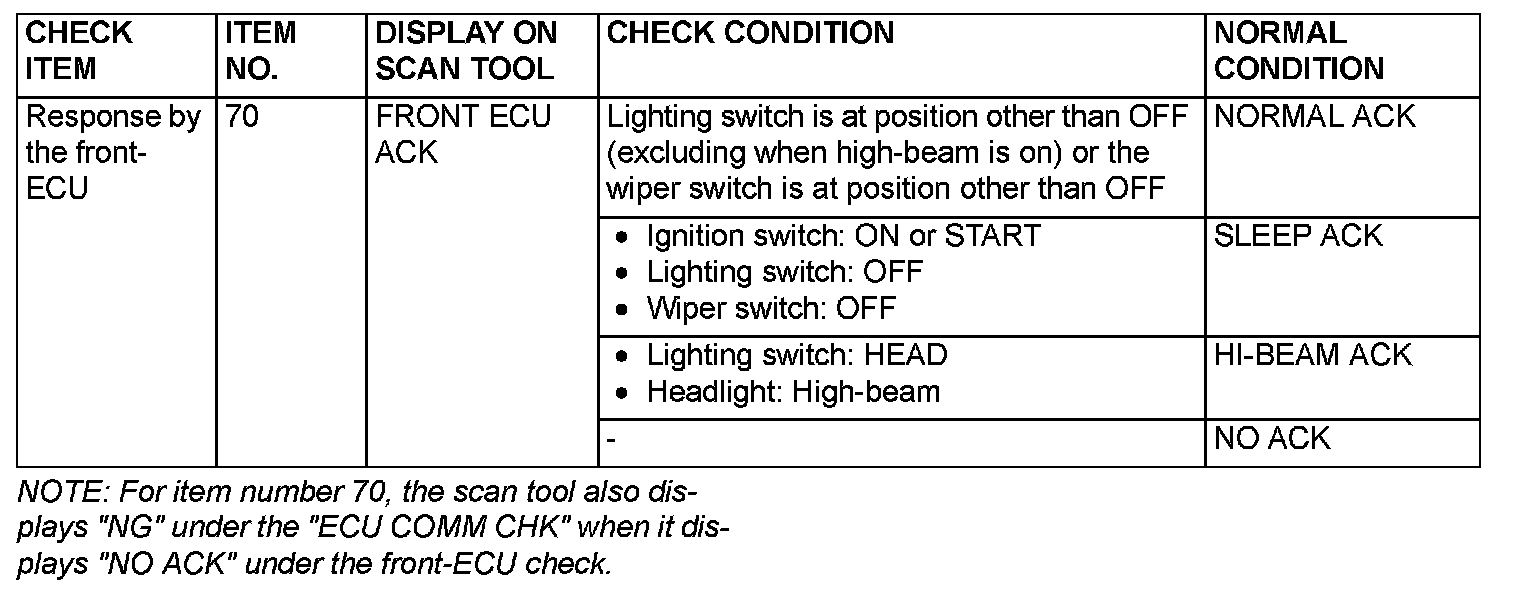 Data List Reference table - Front ECU:
