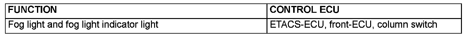 The given ECUs affect the functions and control of the fog lights and fog light indicator light.