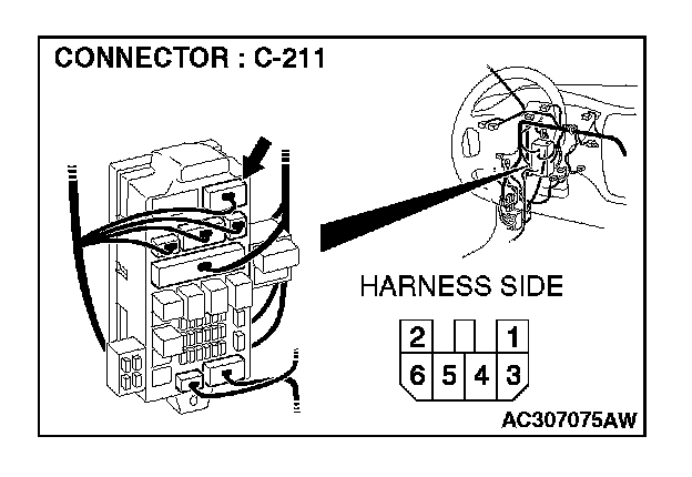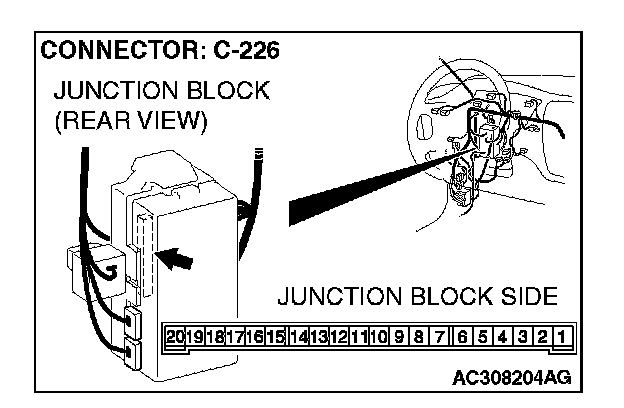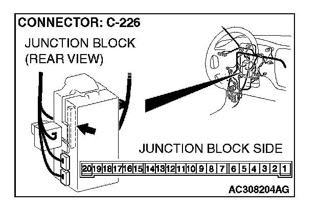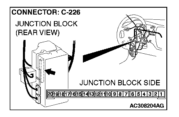1. Disconnect ETACS-ECU connector C-226 and measure the voltage available at the junction block side of the connector.