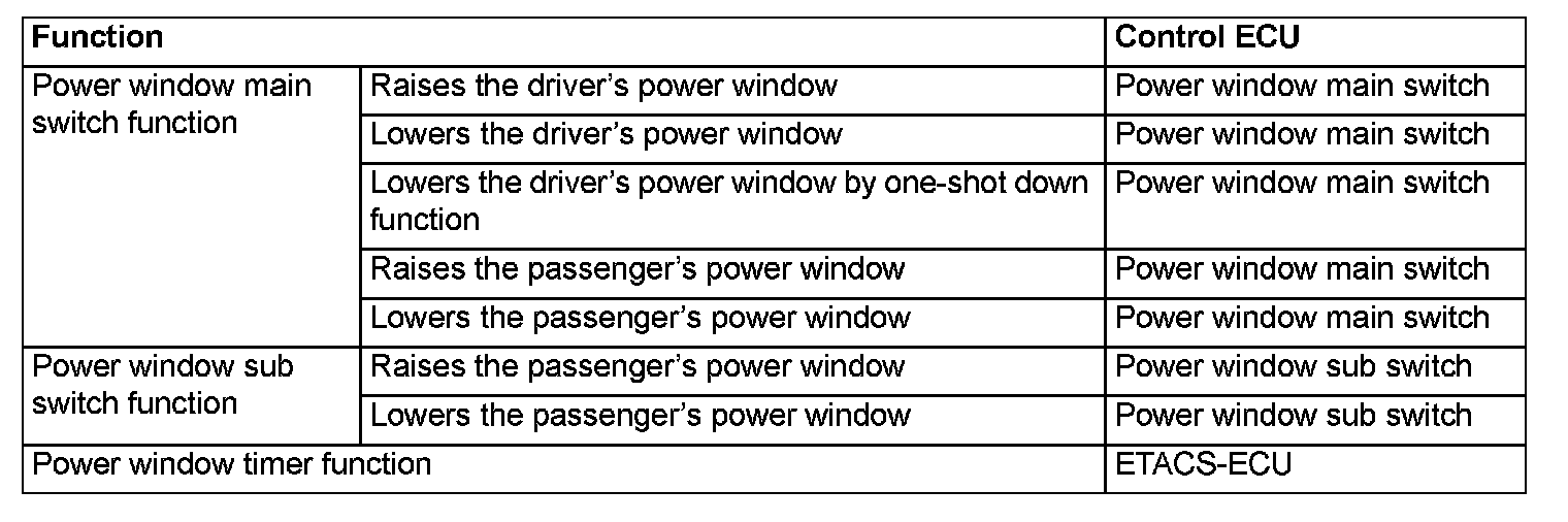 POWER WINDOW MAIN SWITCH FUNCTION Raises the driver's power window