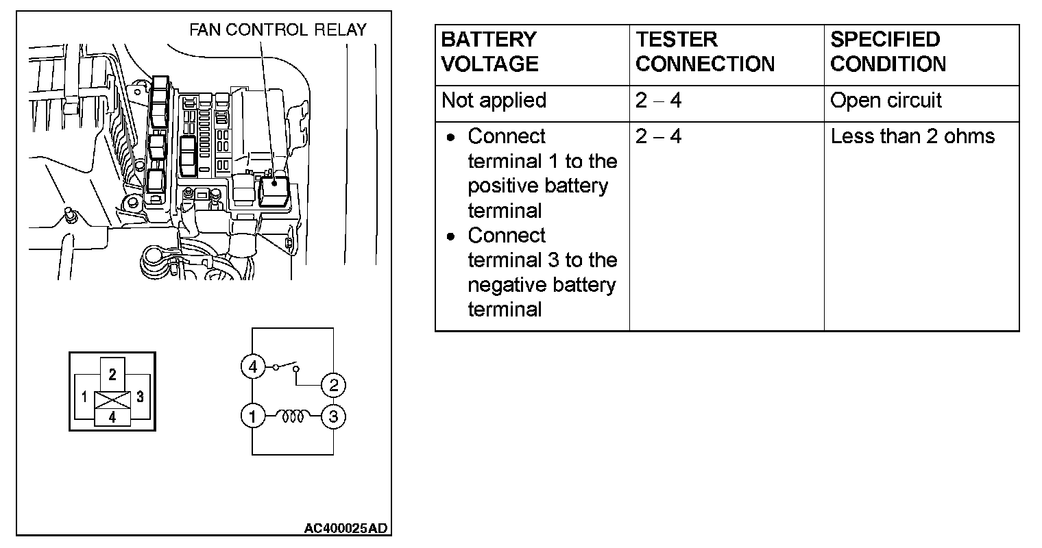 Fan Control Relay Continuity Check: